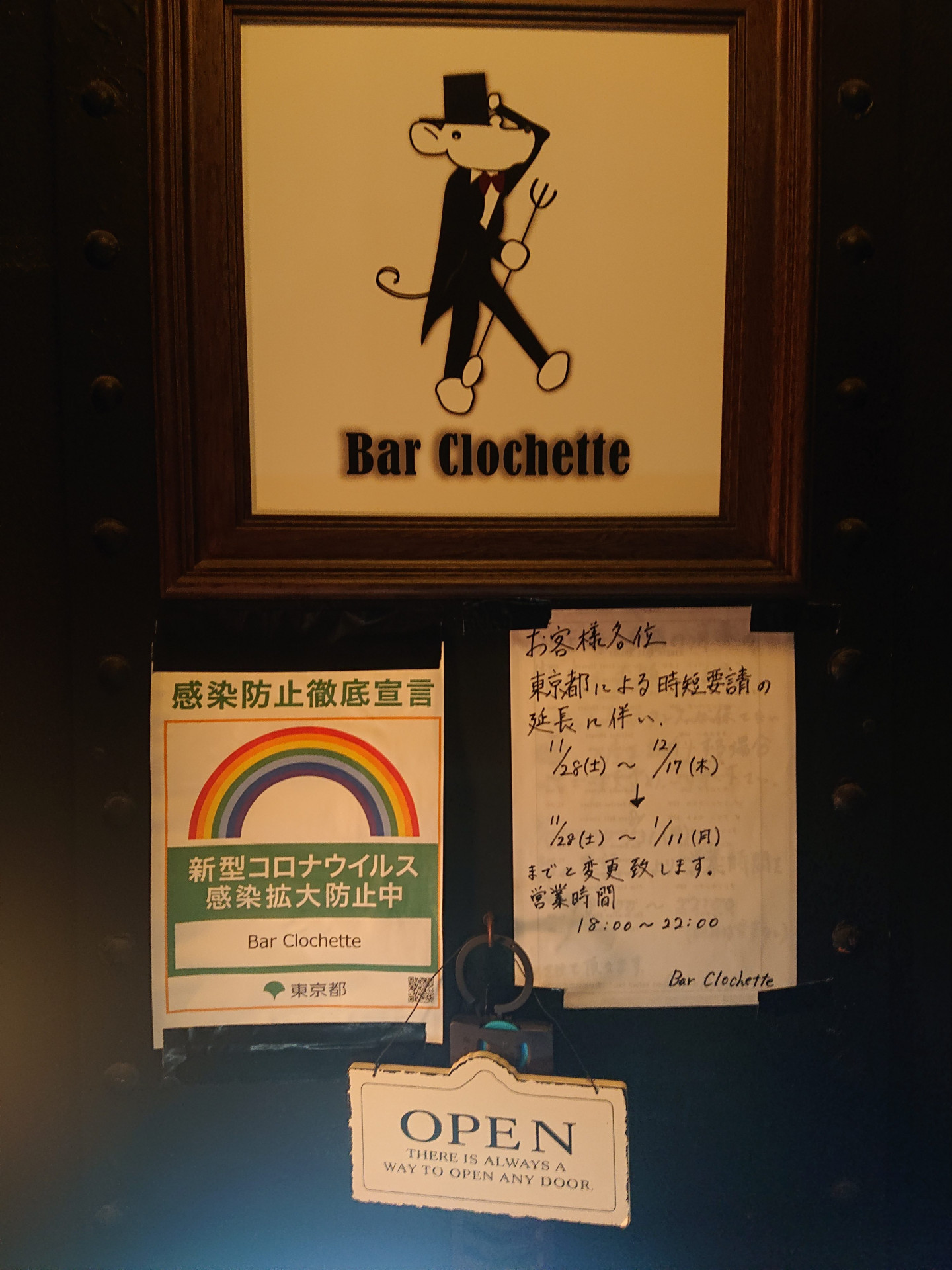 西葛西 バー クロシェット 時短要請延長の為、時短営業が続きます。 2020/12/15 西葛西 バー クロシェットです。 昨日発表されました、東京都時短要請延長に伴い、当店も要請を受け入れ延長致します。 期間 11/28(土)~1/11(月) 時短営業時間 18:00~22:00 となります。 何卒よろしくお願い致します。 西葛西 Bar Clochette