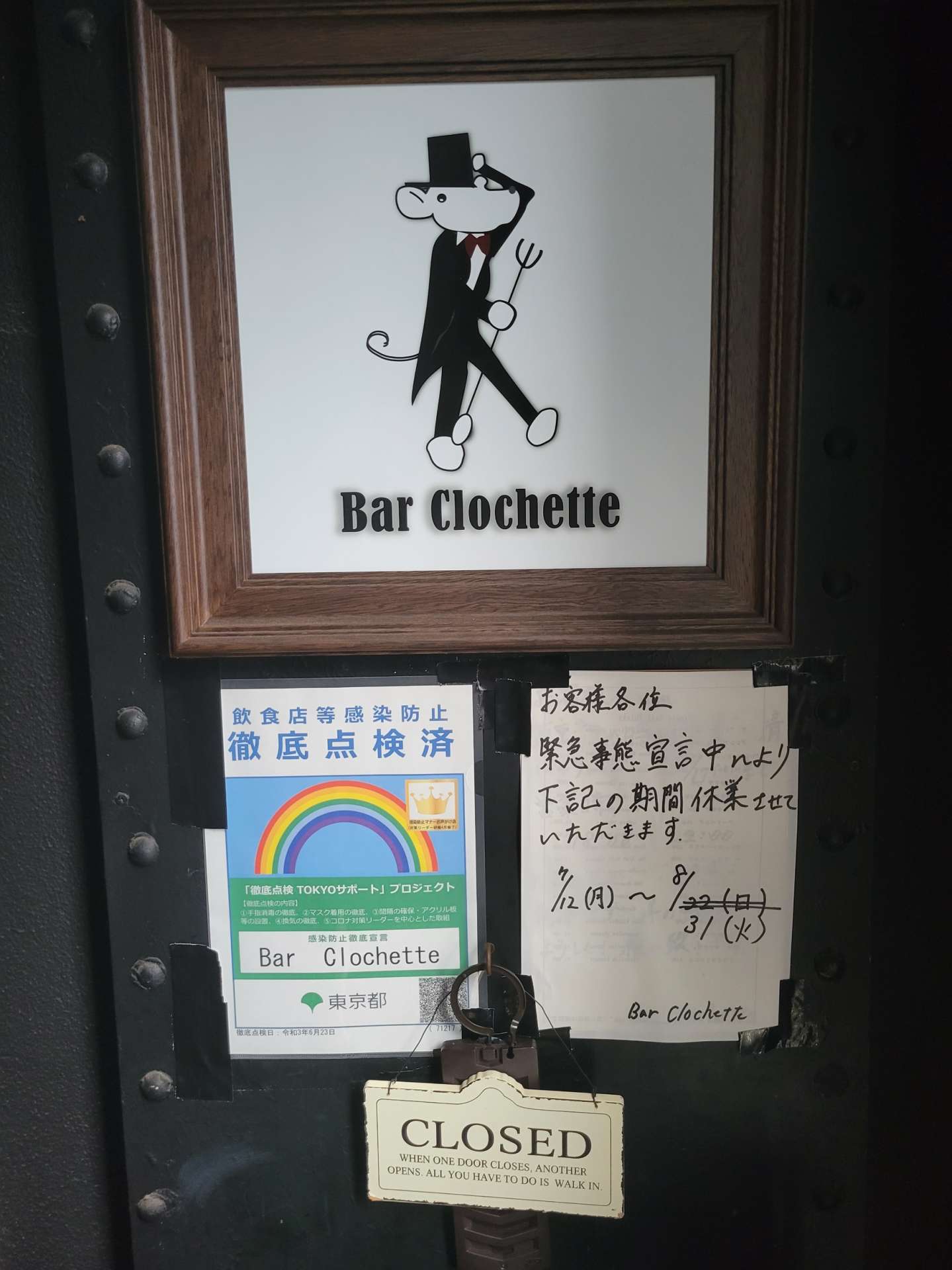 西葛西 バー クロシェット 緊急事態宣言の延長により休業を延長致します。 2021/08/17 西葛西 バー クロシェットです。 緊急事態宣言の延長により、当店の休業も延長致します。 旧 7/12(月)~8/22(日) ↓ 新 7/12(月)~8/31(火) 御不便をお掛けしますが何卒ご理解の程、よろしくお願い致します。 西葛西 Bar Clochette