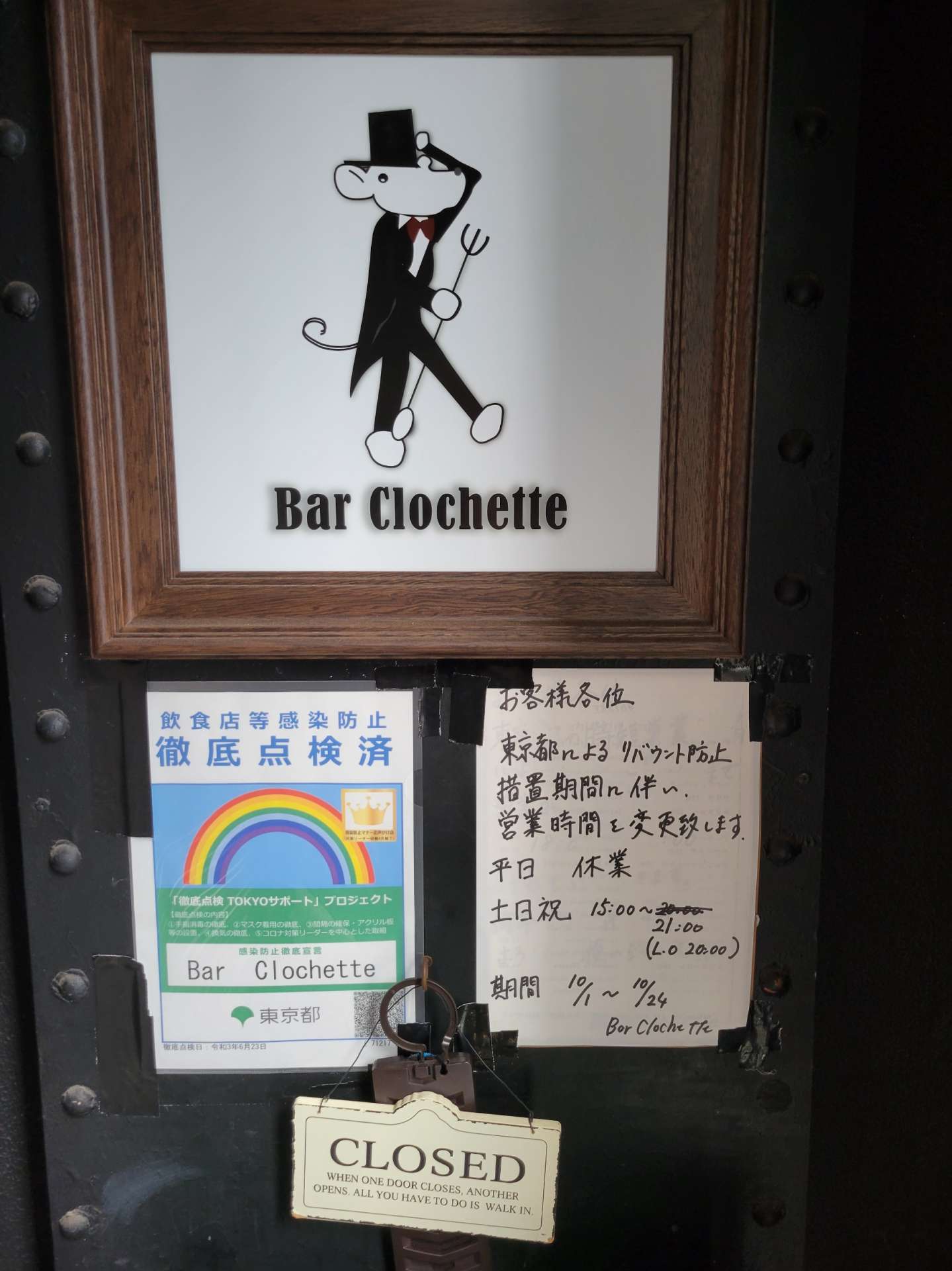 西葛西 バー クロシェット 10/2より営業再開致します。 2021/09/29 西葛西 バー クロシェットです。 10/2より営業を再開致します。しかしながら東京都がリバウンド防止措置期間という措置を行った為、営業時間が変則的になります。 平日 休業 土日祝 15:00~21:00(L.O20:00) 期間 10/1~10/24 となります。何卒よろしくお願い申し上げます。 西葛西 Bar Clochette