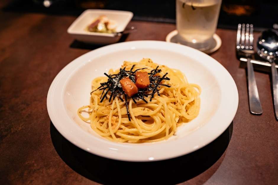 写真はお客様に綺麗に撮っていただいた燻製たらこバターのパスタです。燻製のたらこも当店で燻製したたらこを使用しており、全て自家製です。本当に美味しいので是非皆様の御来店、ご注文をお待ちしております。