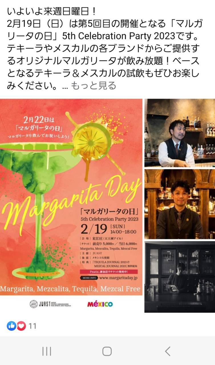 西葛西 バー クロシェット いよいよ来週マルガリータの日です! 2023/02/12 西葛西 バー クロシェットです。 いよいよ来週マルガリータの日です!まだチケットありますのでいつでも買いに来てください! 皆様のご来場を御待ちしてます!