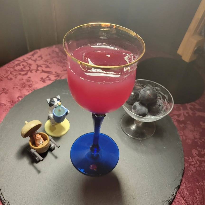西葛西バークロシェット カクテルの御紹介 2023/09/06 巨峰とラベンダーのカクテル Gin Grapes Cranberry Juice Lavender Essence 気候が秋らしくなって参りました。秋らしい旬の味覚とお待ちしております。