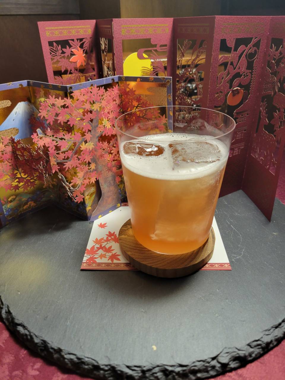 西葛西 バー クロシェット 22日のカクテルの撮影とご紹介 2023/10/18 西葛西 バー クロシェットです。 22日(日)のカクテルその5。 「真夜中のアンダンテ」 アンダンテは歩くような早さでという意味です。寝付けぬ夜を楽しむ様にゆっくりとお酒を嗜む様を表現しました。 ミルクウォッシュした、ほうじ茶、カカオニブ、シュガーをインフューズしたラム シャンボール ベリーリキュール グレープフルーツジュース トニックウォーター 今回のカクテルの中では一番万人受けすると思われるカクテル。飲み疲れた時に是非。