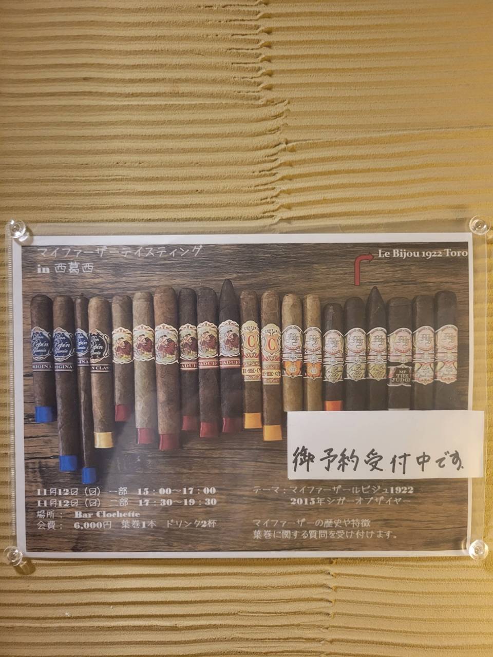 西葛西 バー クロシェット 11/12(日)シガーテイスティングイベントのお知らせ 2023/10/19 西葛西 バー クロシェットです。 11/12(日)にシガーテイスティングイベントを行います。 「マイファーザーテイスティング」 1部 15:00~17:00 2部 17:30~19:30 場所 Bar Clochette 会費 6000円 葉巻 1本 ドリンク2杯付き 御予約はDMでも電話でも可能です。御予約お待ちしております。
