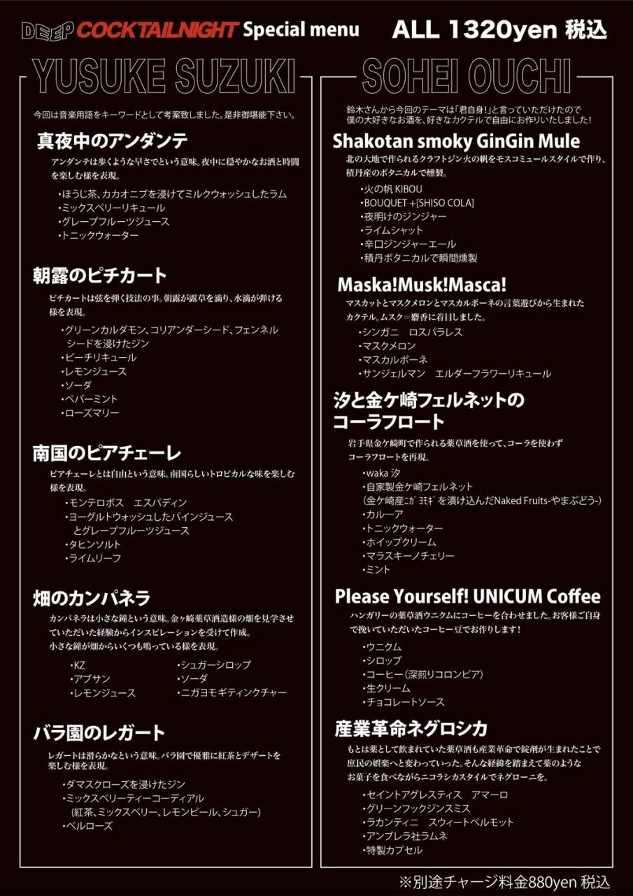 西葛西 バー クロシェット 22日(日)の営業について 2023/10/22 西葛西 バー クロシェットです。 10/22(日)はカクテルイベントの為、終日一般営業は行いません。御予約の方のみの営業となります。何卒御周知の程、お願い致します。 カクテルイベントのメニューが完成しました。是非いらっしゃる前の御参考になさってください。