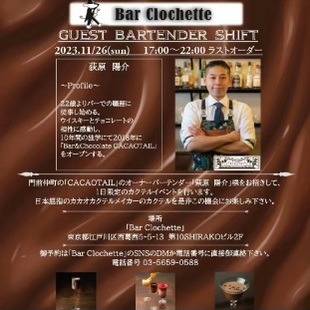 西葛西 バークロシェット 本日のゲストシフトのお知らせ 2023/11/26 西葛西 バー クロシェットです。 本日はゲストバーテンダーとして門前仲町より「CACAO TAIL」の萩原様をお呼びして、当店でカクテルを御提供いただきます。 本日は通常より一時間早く、17:00よりオープン致します。萩原様の限定カクテルに加え、当店のグランドメニューからも通常通り御注文いただけますので、合わせてお楽しみください。 本日は御予約で大変混みあっております。御来店の際は、お電話いただけますと確実です。 本日も沢山のお客様の御来店をお待ちしております。