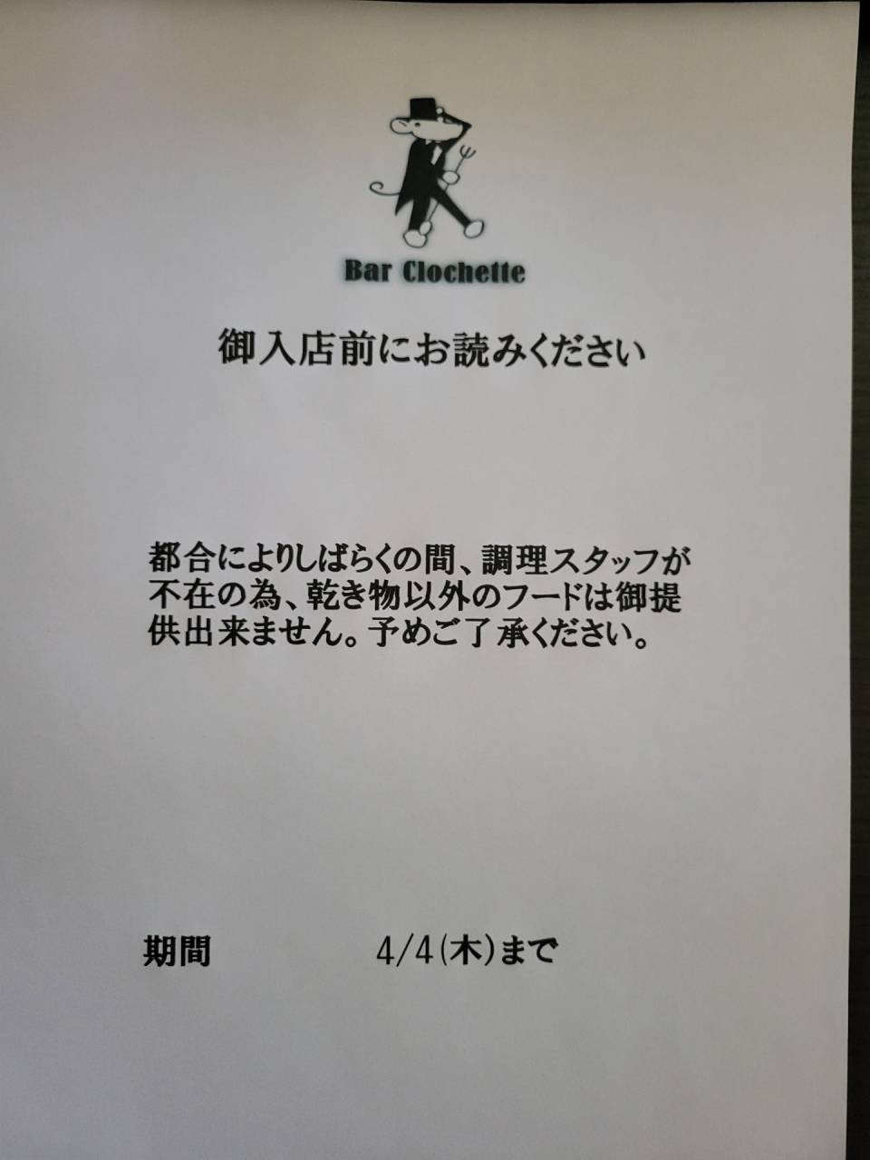 西葛西 バー クロシェット お知らせ 2024/04/02 西葛西 バー クロシェットです。 諸事情により、調理スタッフが不在の期間が延びてしまい申し訳ありません。4/5(金)に復帰予定ですが、今のところまだ明言できません。 お客様には何卒御理解の程、お願い致します。